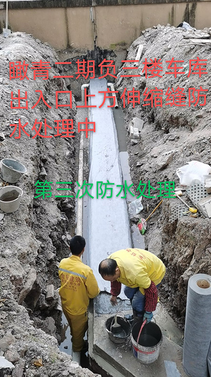 聯(lián)發(fā)瞰青第3次防水處理:聯(lián)發(fā)瞰青二期,負(fù)三樓車庫出入口上方伸縮縫防水處理