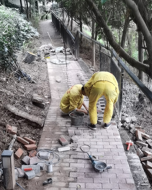 針對(duì)步道的不同問(wèn)題,我們采取了多種維修方法。對(duì)于表面裂縫和坑洼,我們首先進(jìn)行了清理和修補(bǔ)工作,填充了裂縫并平整了表面。在選用修補(bǔ)材料時(shí),我們考慮到了其耐久性和環(huán)境友好性,選擇了高質(zhì)量的修補(bǔ)材料,確保了修補(bǔ)效果的持久性。同時(shí),為了提高步道的整體質(zhì)量,我們還進(jìn)行了部分路面重新鋪設(shè),保證了步道的平整度和舒適度。